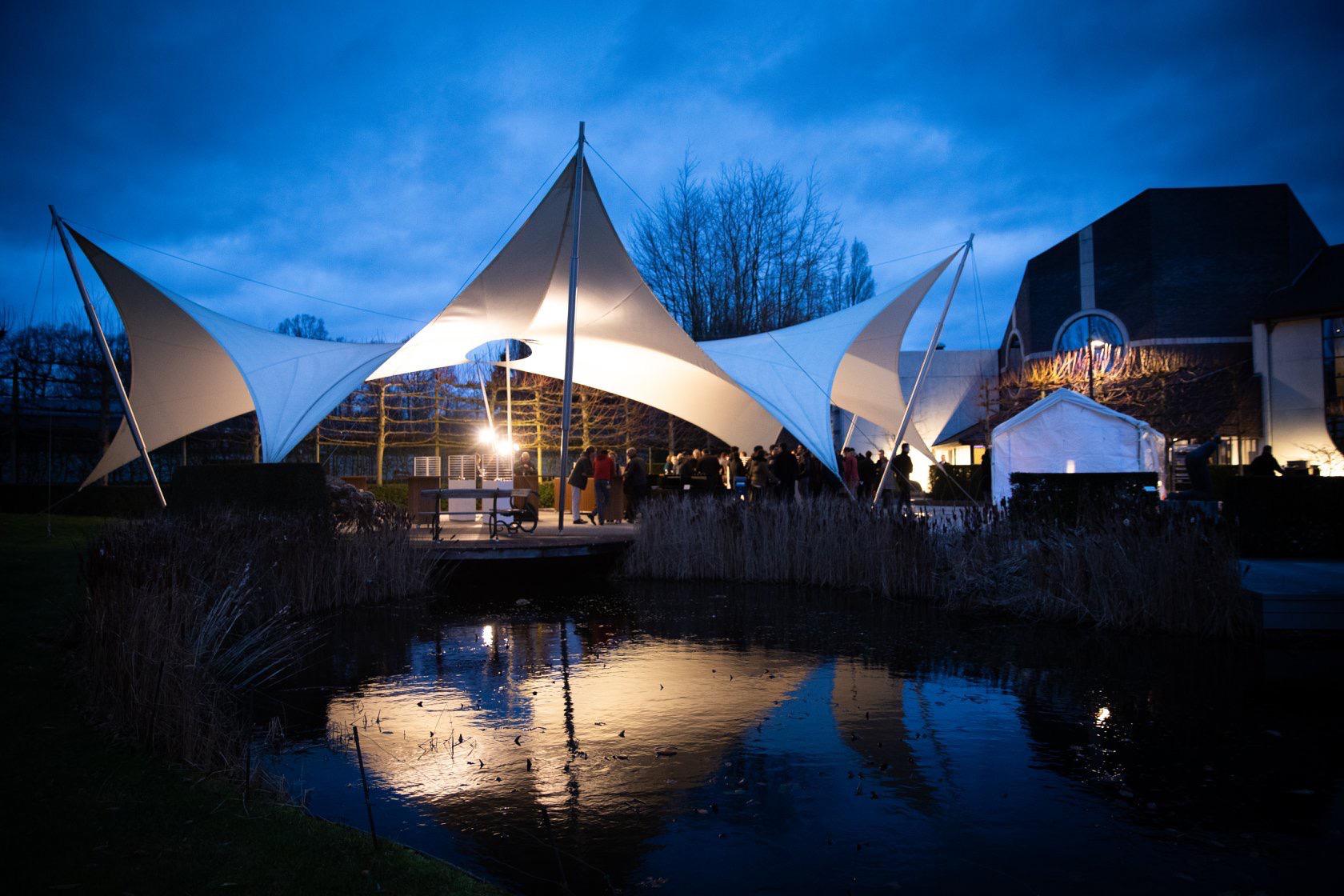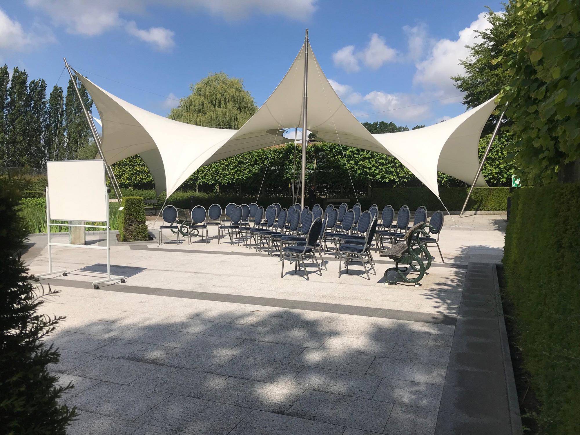 Jan De Bolle (1930 – 2013), stichter van het congrescentrum, onderhield contacten met meerdere beeldende kunstenaars en haalde heel wat van hun werken naar De Montil. Deze werken kan u vandaag bewonderen doorheen het gebouw en in de prachtige tuin. Samen met het terras, dat deels overkoepeld wordt door een zeilstructuur, is onze tuin de uitgelezen plek voor uw receptie, (winter)barbecue, enz. Ook andere evenementen zoals een workshop zijn uiteraard mogelijk.