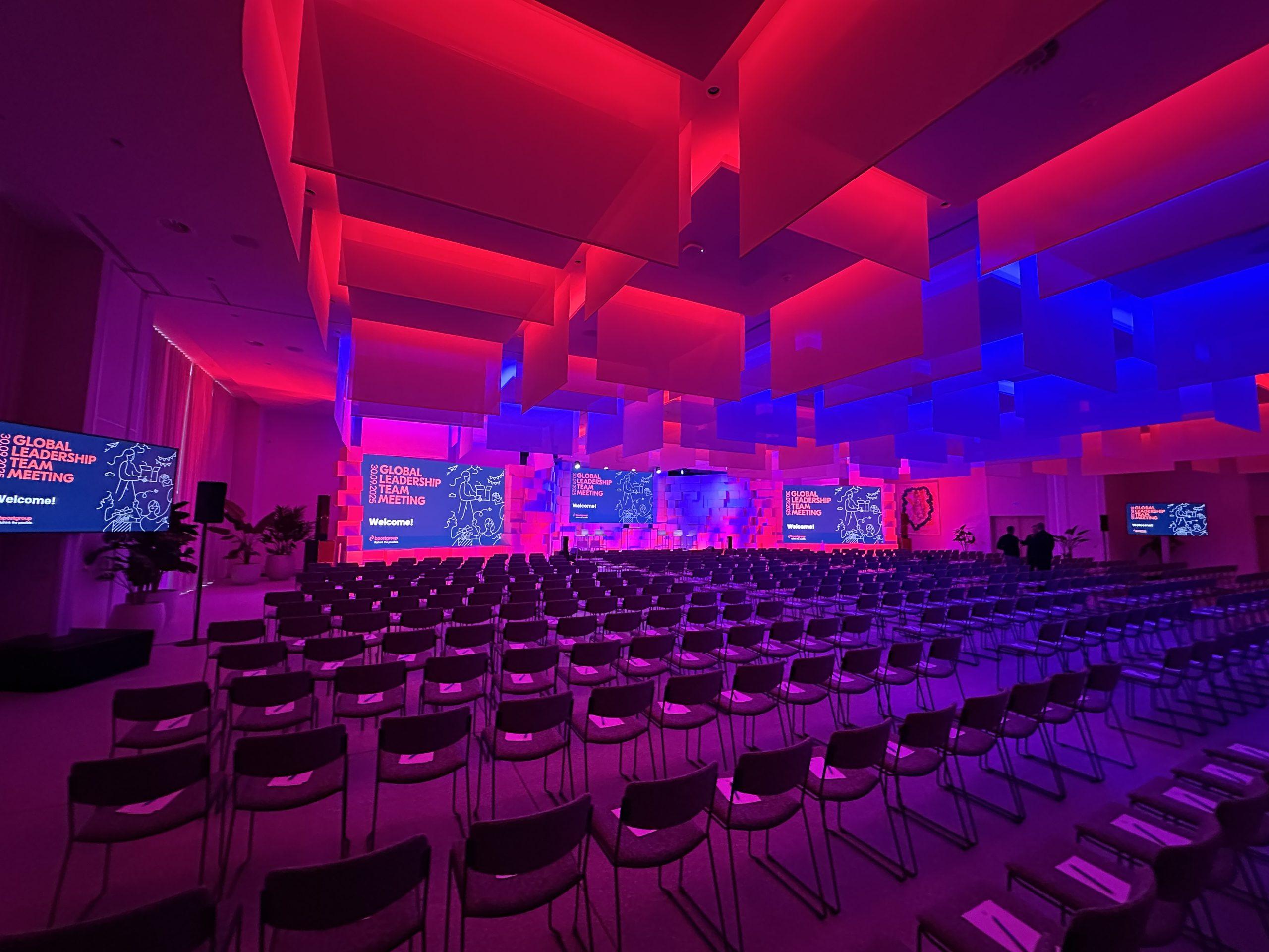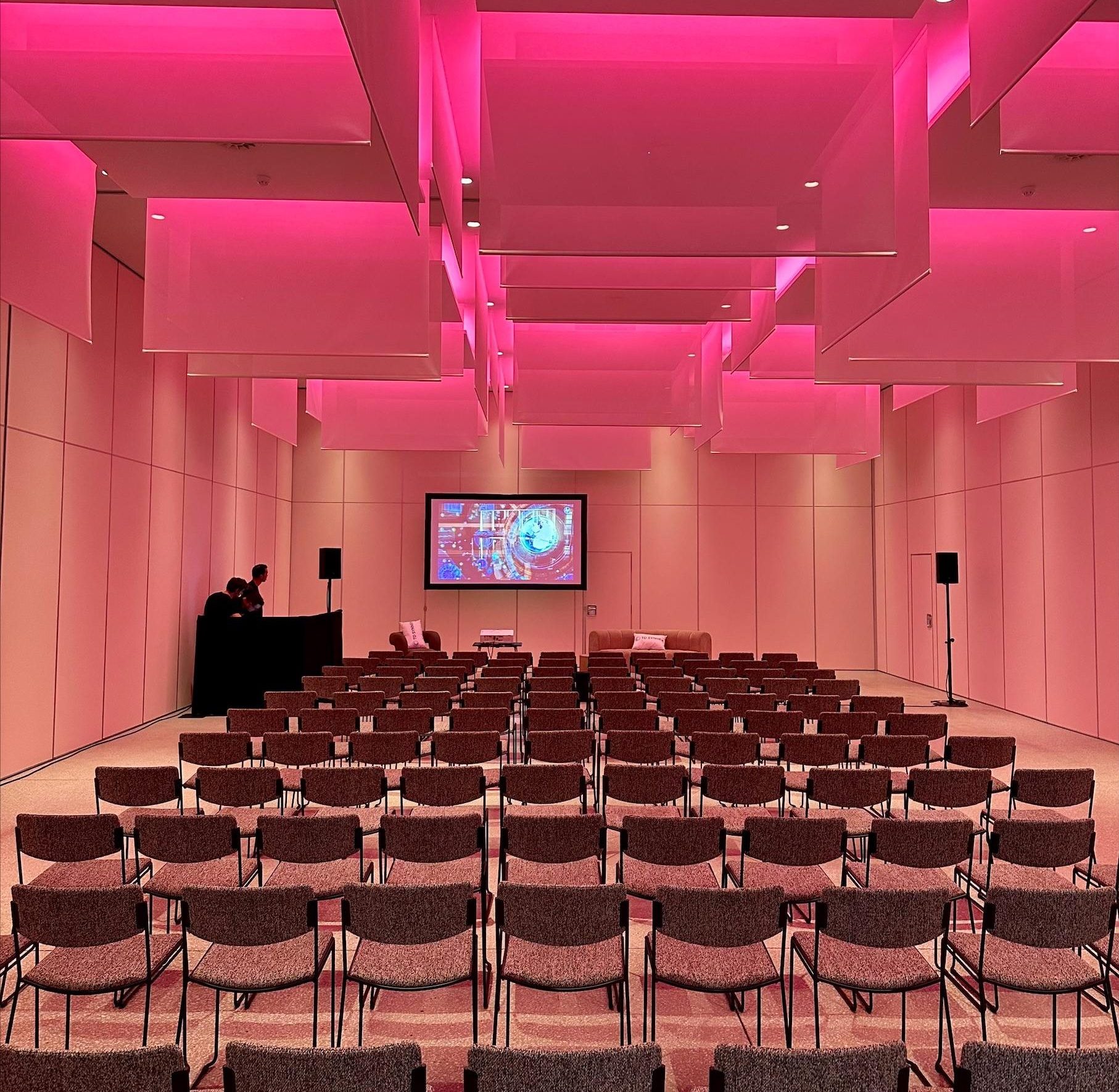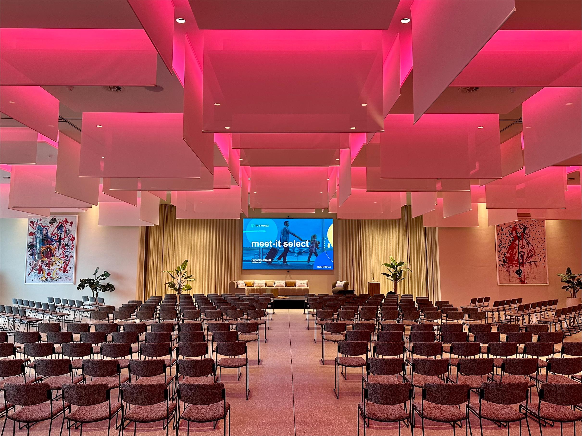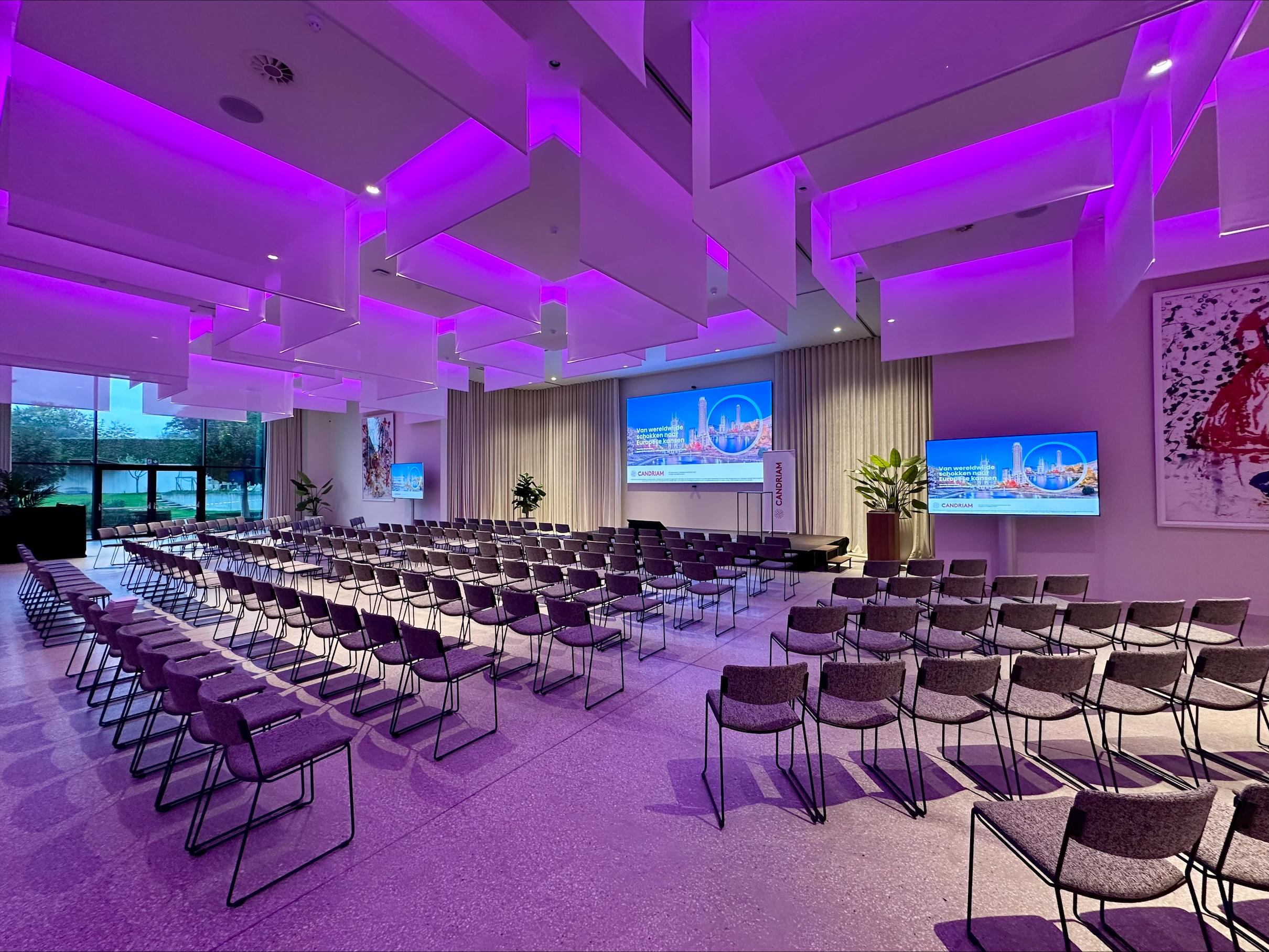 Elke zaal is aangenaam ingekleed en is voorzien van sfeervolle ledverlichting die u kan dimmen of uitschakelen in functie van uw presentatie. Het klimaat kan tevens geregeld worden in functie van uw wensen.