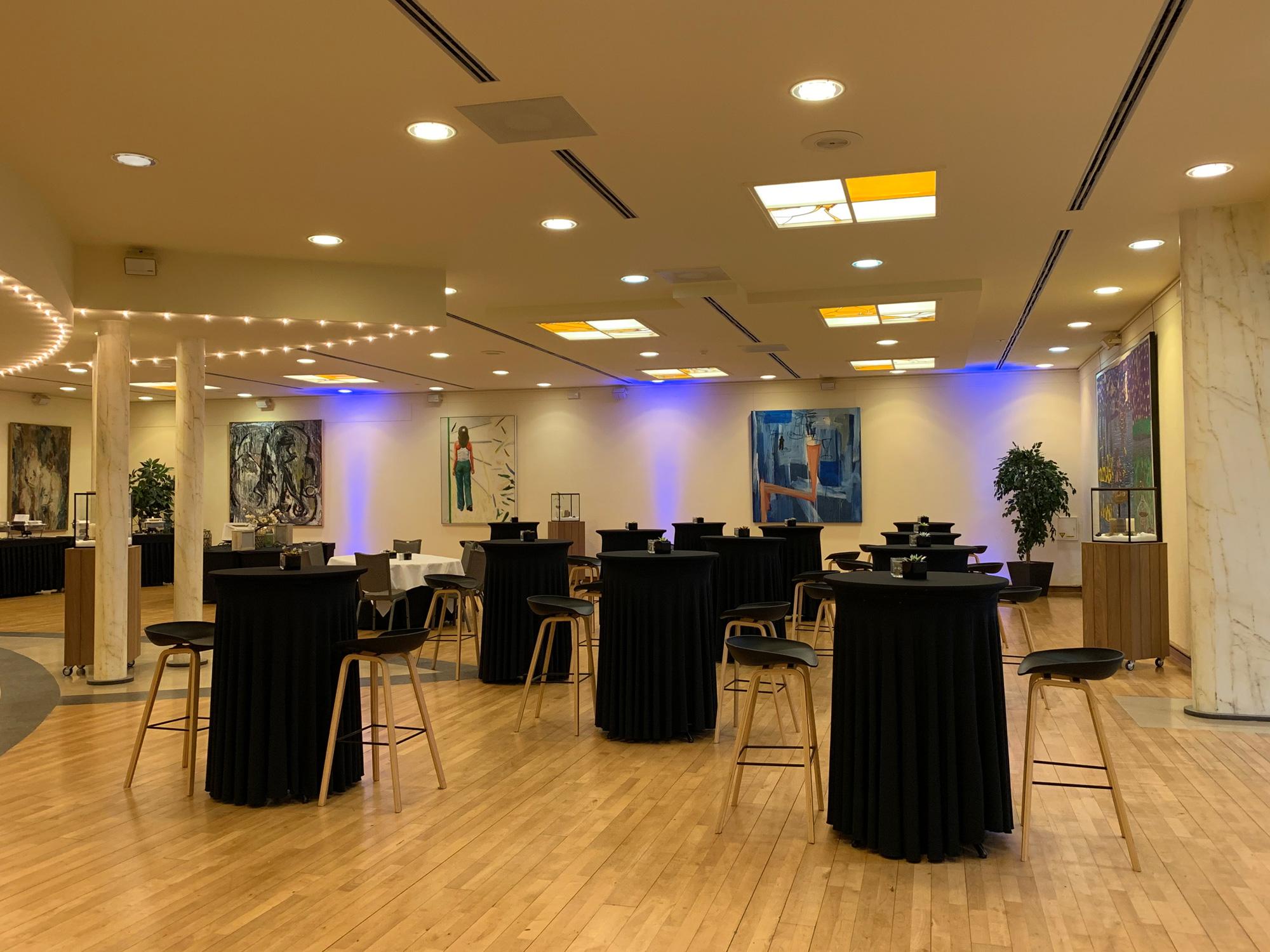 Elke zaal is aangenaam ingekleed en is voorzien van sfeervolle ledverlichting die u kan dimmen of uitschakelen in functie van uw presentatie. Het klimaat kan tevens geregeld worden in functie van uw wensen.