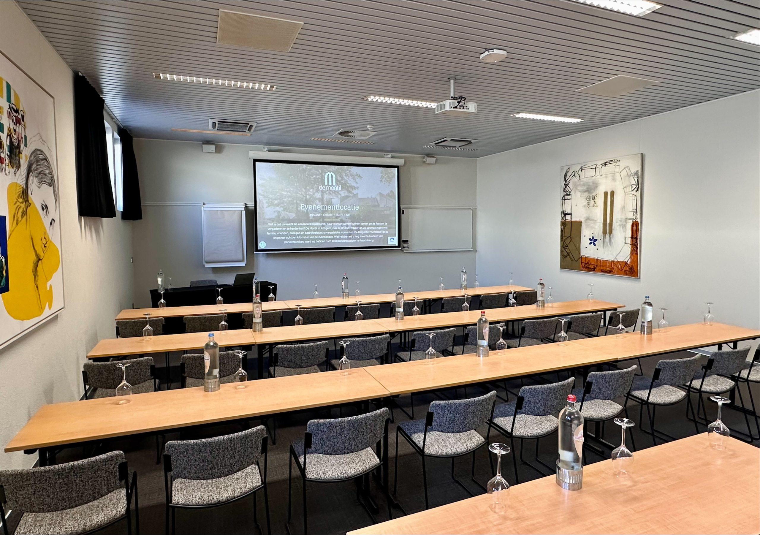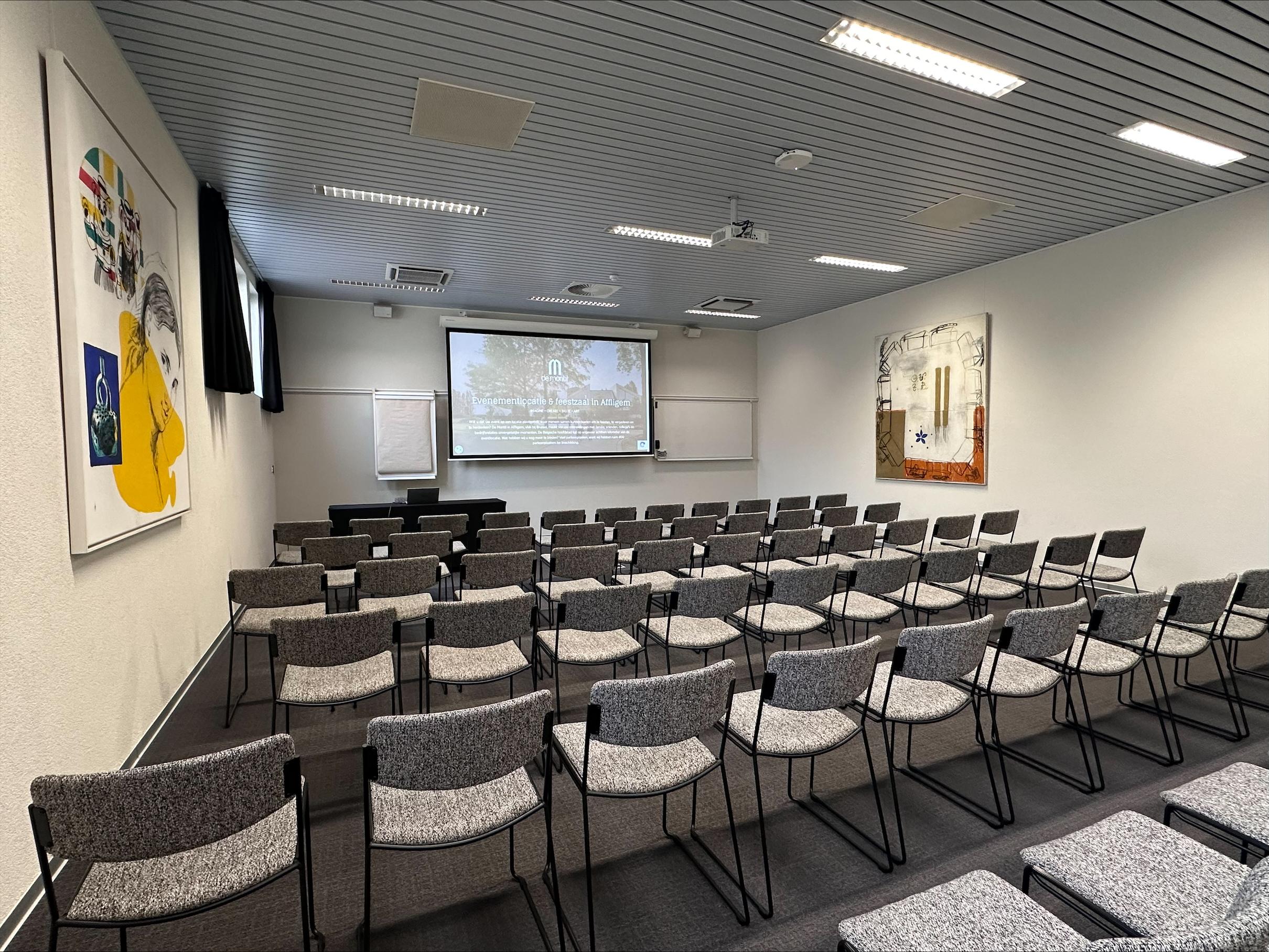 Elke zaal is aangenaam ingekleed en is voorzien van sfeervolle ledverlichting die u kan dimmen of uitschakelen in functie van uw presentatie. Het klimaat kan tevens geregeld worden in functie van uw wensen.