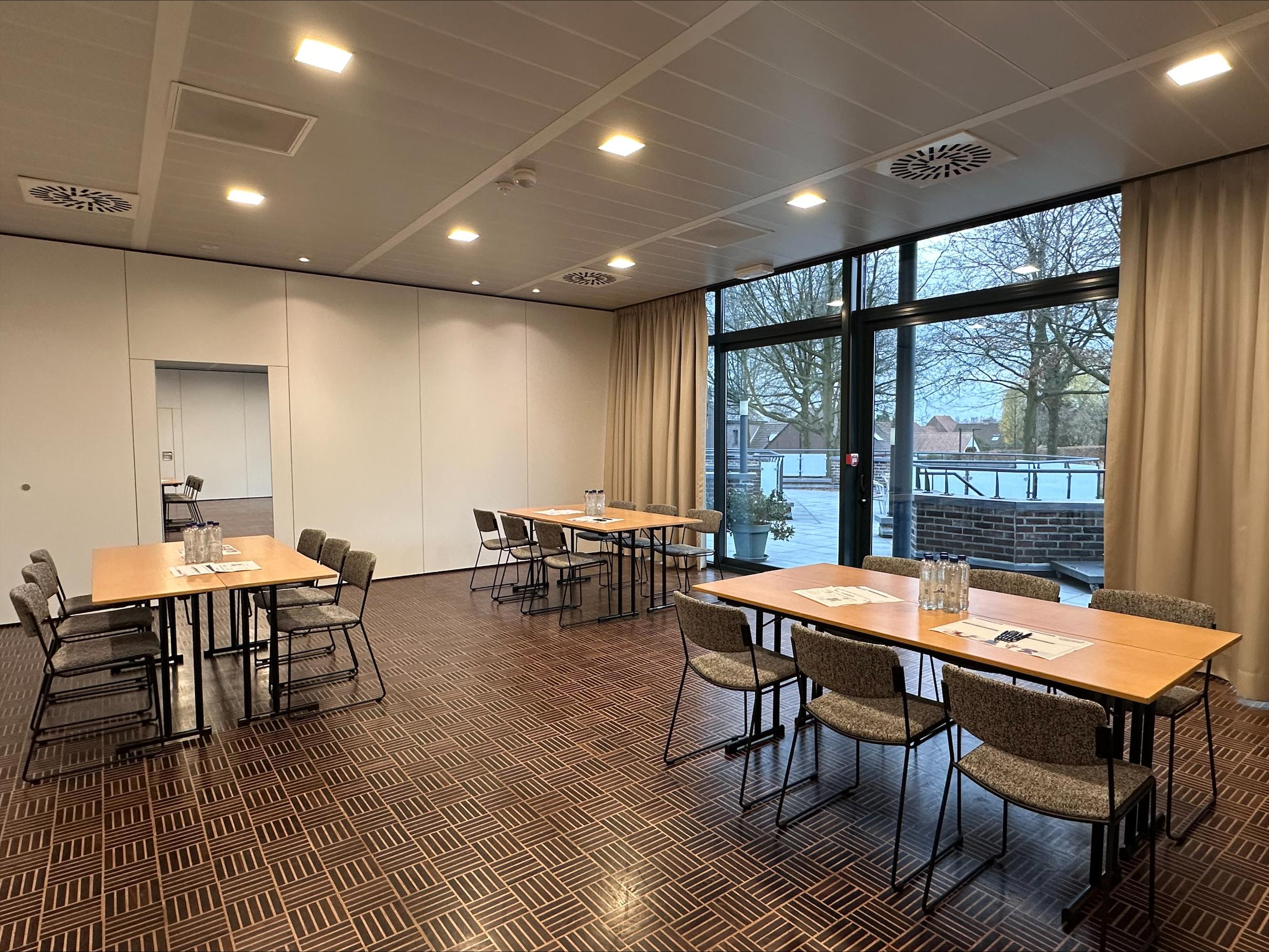 De zalen op de eerste verdieping zijn bereikbaar met de lift. Hierdoor is onze volledige accommodatie rolstoeltoegankelijk.